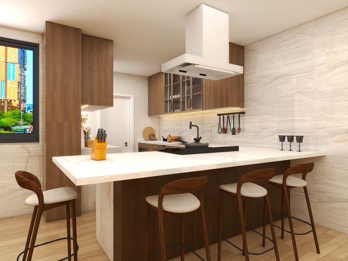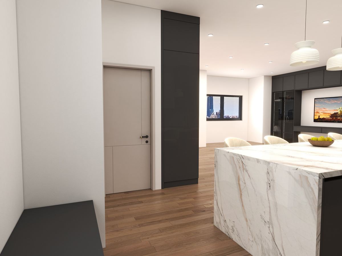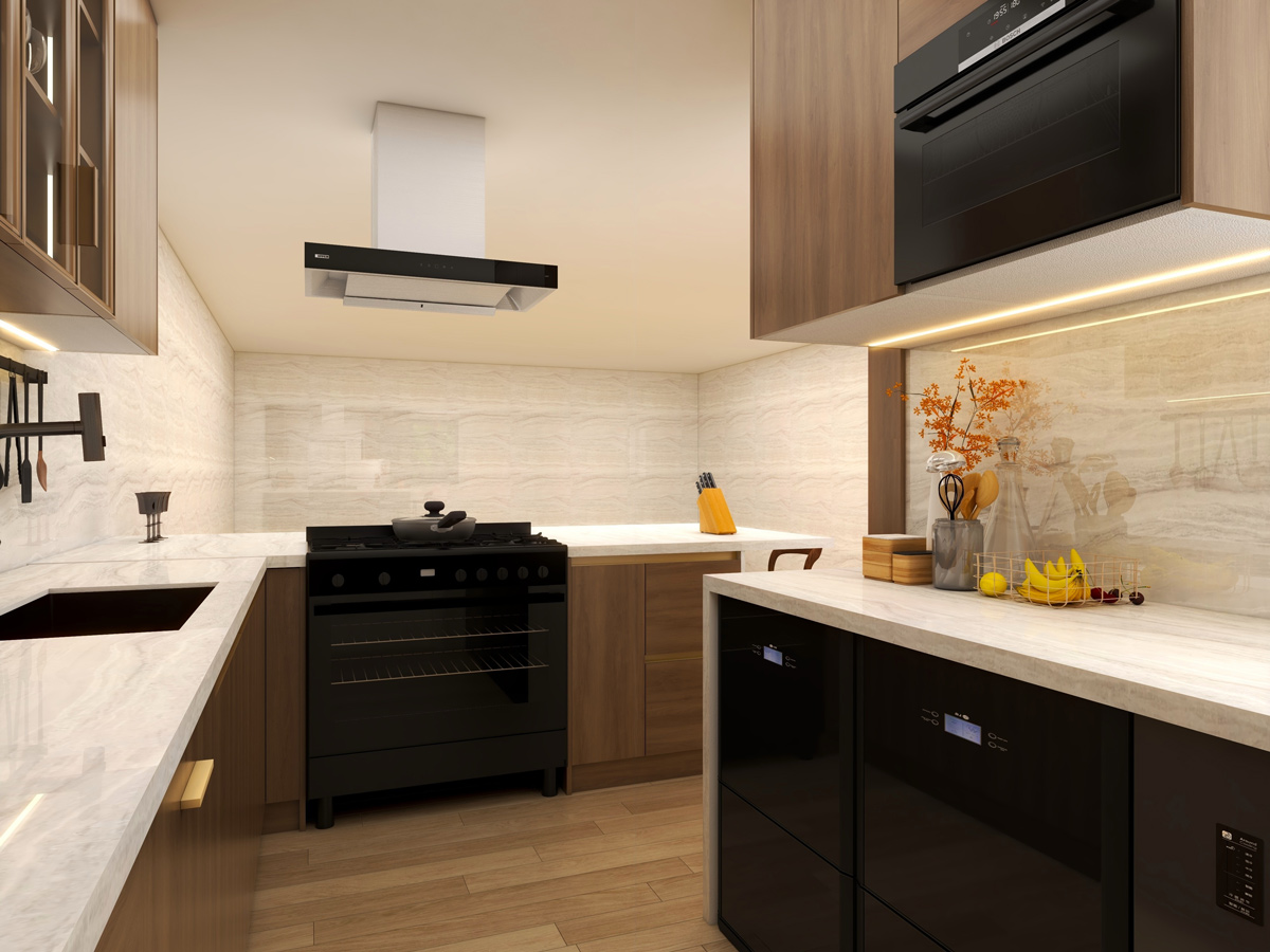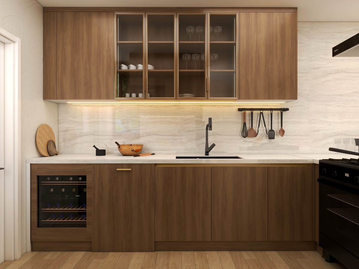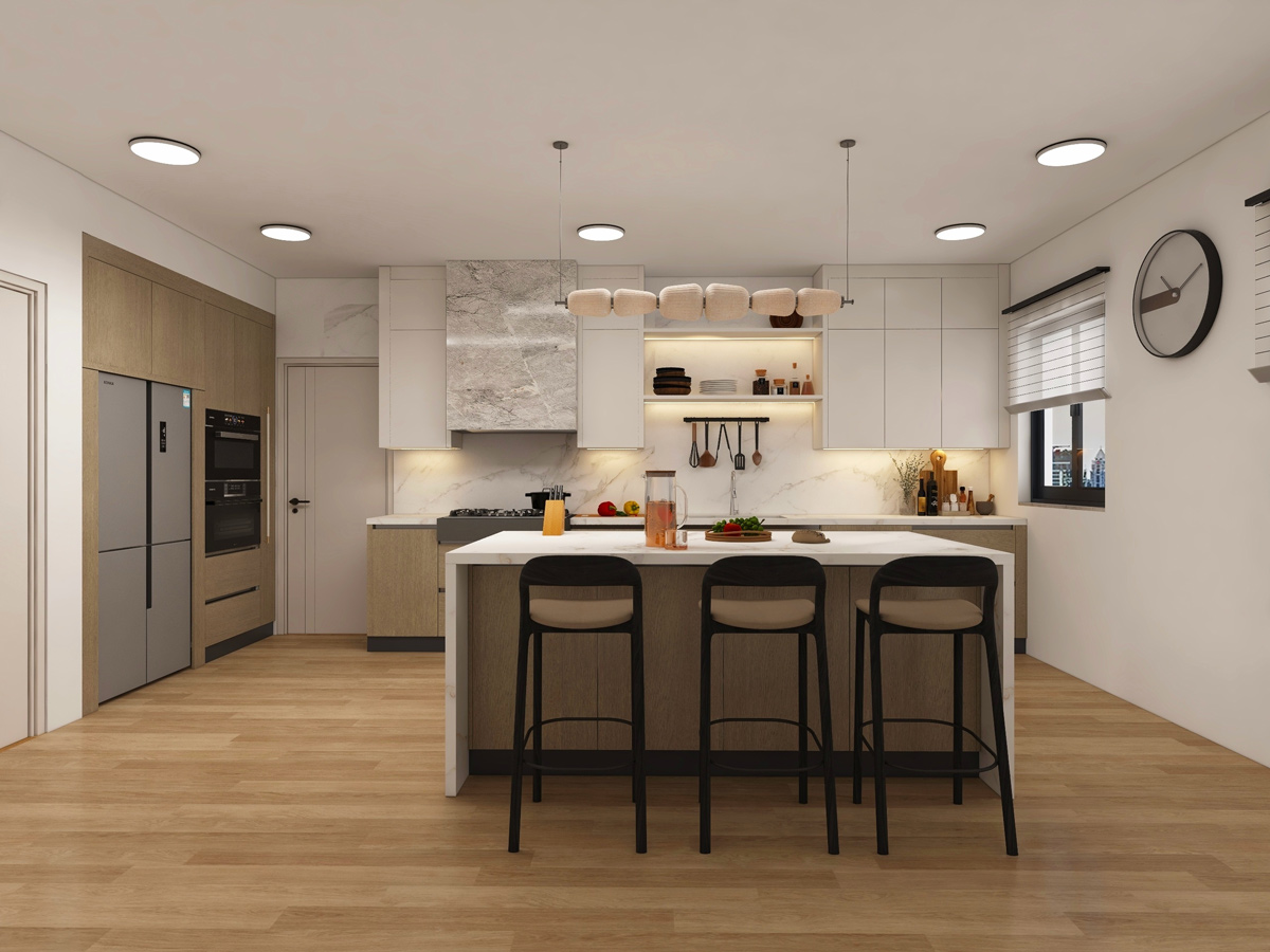 The interiors reflect a contemporary design language where form meets function. Every element—from cabinetry proportions to material selection—is carefully curated to create spaces that feel sophisticated, practical, and inviting.
