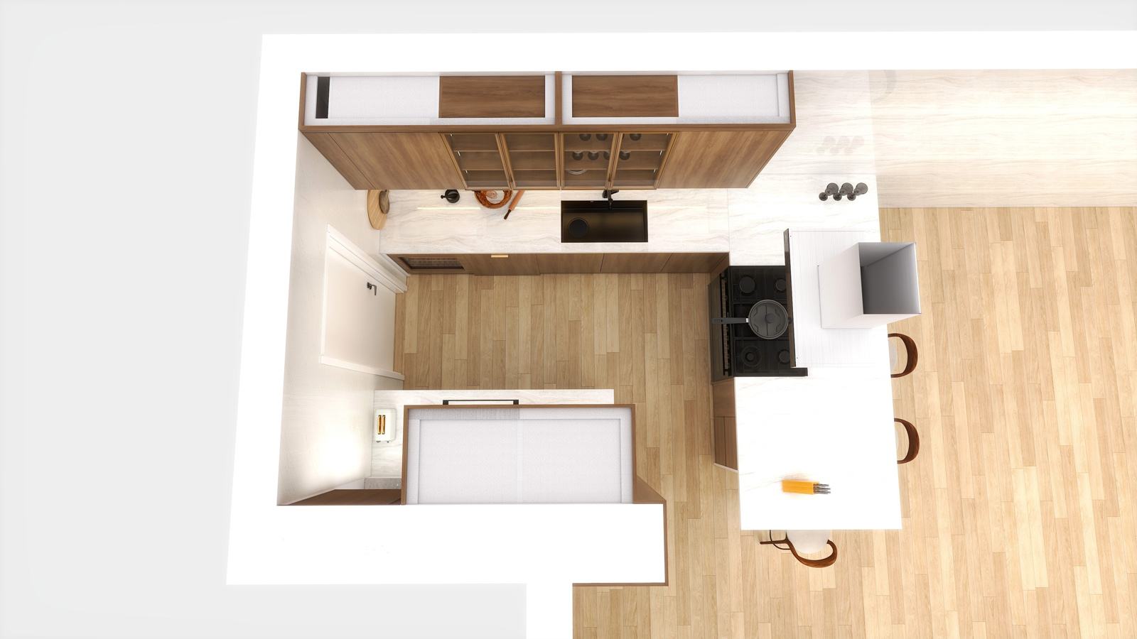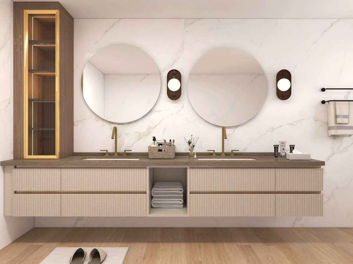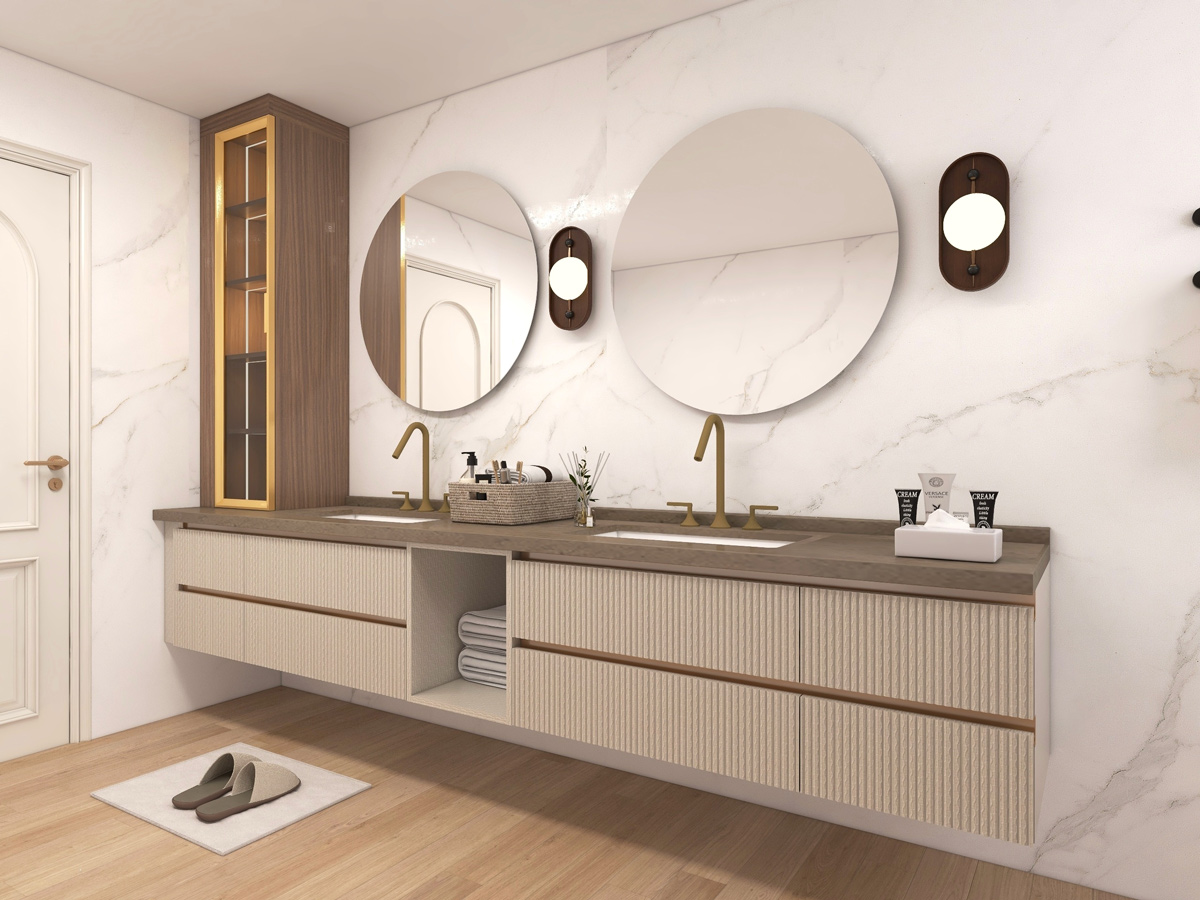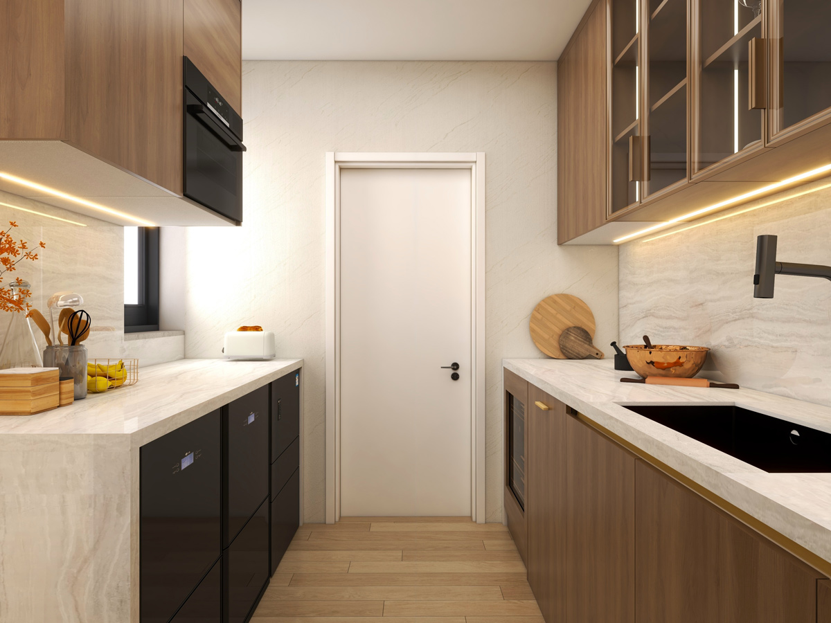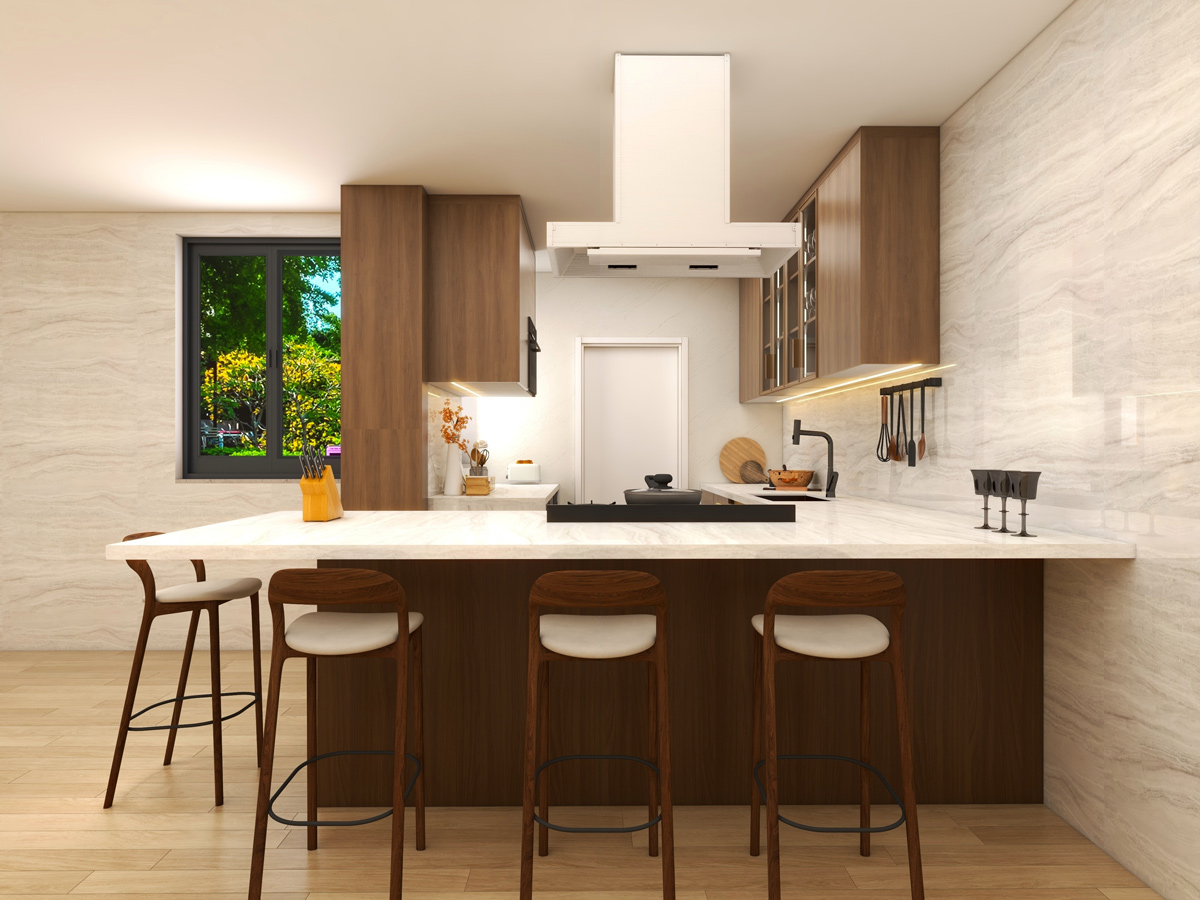 The interiors reflect a contemporary design language where form meets function. Every element—from cabinetry proportions to material selection—is carefully curated to create spaces that feel sophisticated, practical, and inviting.