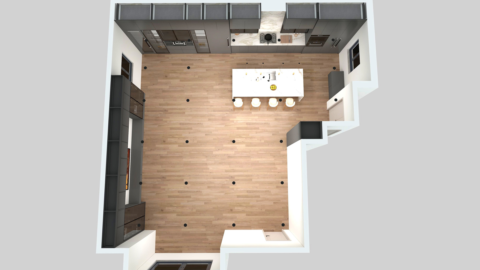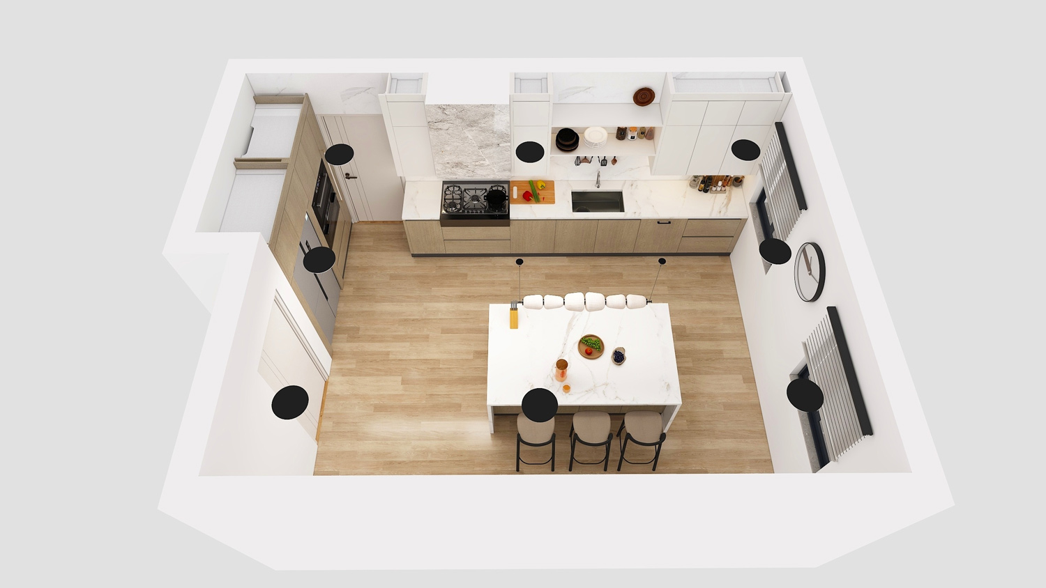 - Seamless integration of storage solutions maintains a clean, clutter-free aesthetic.